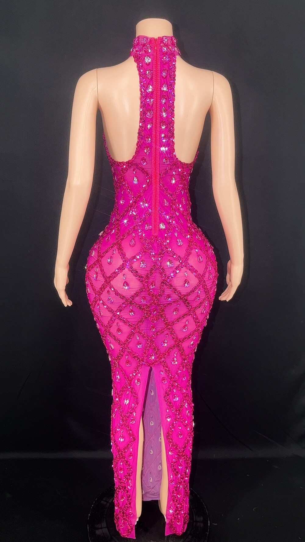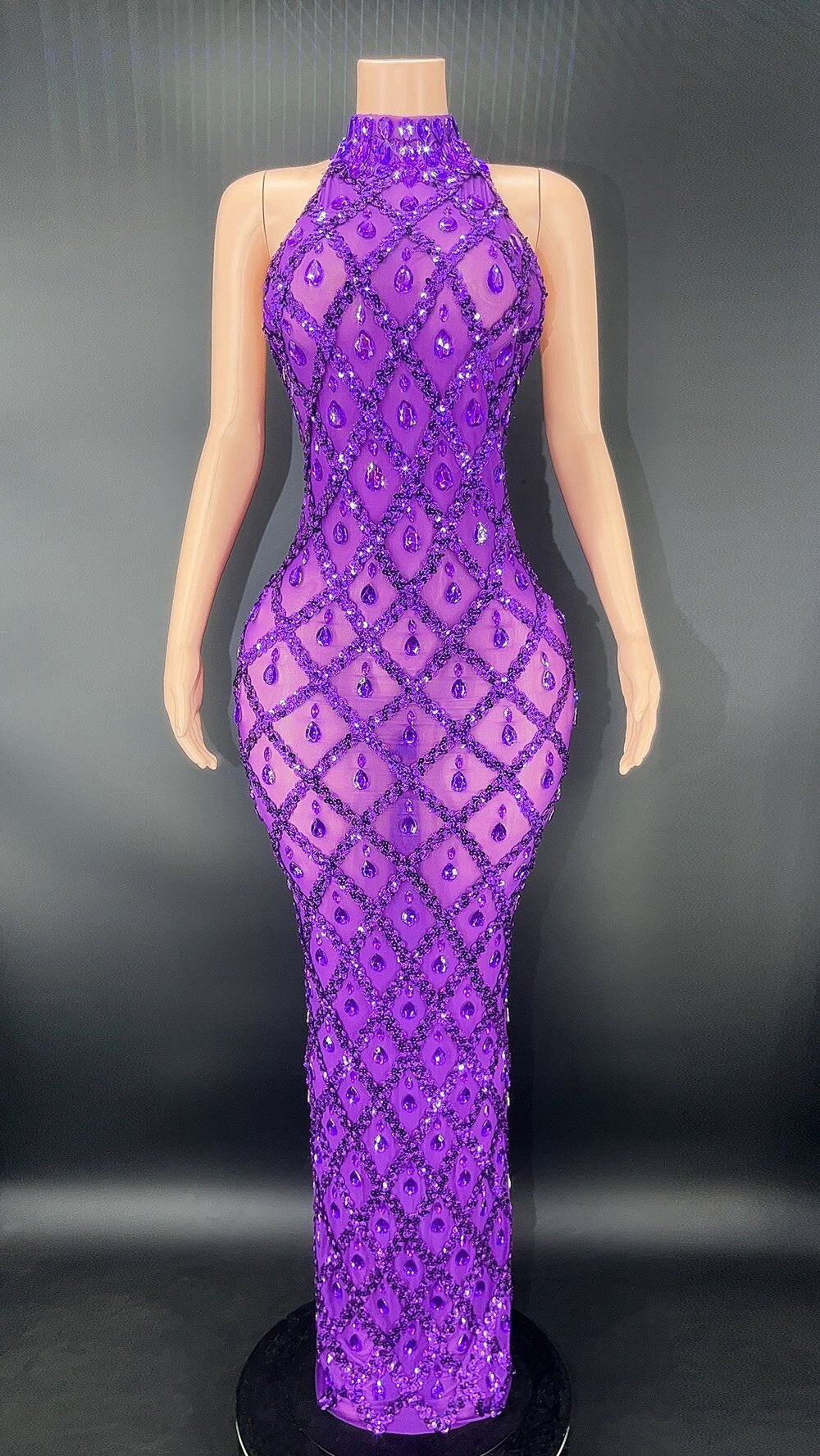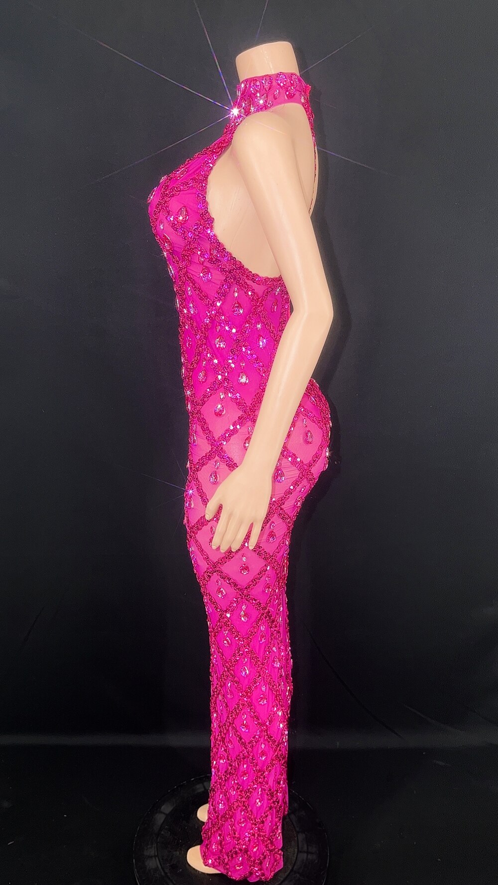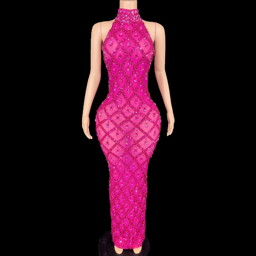 Sparkly Sequins Rhinestones Sleeveless Dress Sexy Mesh Transparent